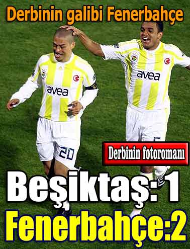 Turkcell Süper Lig’deki derbi maçında Fenerbahçe, Beşiktaş’ı 2-1 yenerek liderliğini sürdürdü. Lig lideri Fenerbahçe, rakip taraftarının baskısıyla başladığı maçın ilk dakikasında kontrolü elinde bulundurdu. İlk dakikalarda rakip sahada daha fazla gözüken sarı-lacivertli ekip, 3. dakikada duran bir topta Lugano’nun kafa vuruşunda, ilk tehlikeli atağını geliştirdi. Kazım ile sağdan tehlikeli ataklar yapan konuk ekip, 11. dakikada kendisini öne geçiren golü buldu. Kazım’ın sağdan ortasında defans oyuncularının müdahale edemediği topla buluşan Alex, meşin yuvarlağı kafayla filelere göndererek, takımını 1-0 öne geçirdi. Kanatlarda Uğur ve Kazım’ı iyi kullanan Fenerbahçe, ikinci gol için rakip kaleyi yokladı.