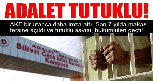 AKP bir utanca daha imza attı. Son 7 yılda makas tersine açıldı ve tutuklu sayısı, hükümlüleri geçti!.. Barolar Birliği’nden ürkütücü rapor Türkİye Barolar Birliği’nin (TBB) “Tutuklama Raporu” AKP iktidarında cezaevlerindeki tutuklu sayısının, hükümlü sayısını geçtiğini ortaya koydu. Son 7 yılda toplam tutuklu sayısı 338 bin 520’ye ulaşırken, hükümlü sayısı 266 bin 986’da kaldı. Tutuklu ve hükümlü sayısının yüzde 100 arttığına da dikkat çeken hukukçular, sistemdeki sorunların giderilmesini istedi.
