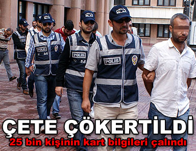 Banka müşterilerinin kredi kartı bilgilerini ele geçirip sahte kartlarla yüklü miktarda dolandırıcılık yaptıkları öne sürülen 16 kişi, 4 ayrı ilde düzenlenen operasyonla gözaltına alındı. Adliyeye sevkedilen çetenin 25 bin kişinin bilgilerini ele geçirdikleri tespit edildi. Çete üyeleri güvenlik kamerasına yakalandı.