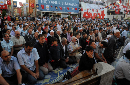 Başbakan Recep Tayyip Erdoğan, bayram namazını Sultanbeyli Merkez Camii’de kıldı. Erdoğan, namazın ardından sonra camide toplanan binlerce kişiye “evet” kampanyasıyla ilgili miting yaptı.