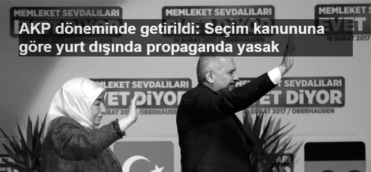 Avrupa ülkeleriyle peş peşe referandum toplantılarının iptal edilmesiyle başlayan kriz, akıllara yurt dışında seçim propagandası yapmanın hangi şartlara bağlı olduğu sorusunu getirdi. İktidardan bakanlar, bir süredir ‘oy deposu’ olarak görülen Avrupa’daki ülkelerde ‘referandum turnesi’ne çıkmaya gayret ederken, toplantılar Avrupa’yla diplomatik gerginliğe neden oldu. Almanya’yla başlayan krizi, Avusturya ve son olarak da Hollanda’yla ‘zirve yaptı.’ Ancak seçimler döneminde propaganda ve oy kullanımı gibi konuları düzenleyen Seçimlerin Temel Hükümleri ve Seçmen Kütükleri Hakkındaki Kanun’da 2008 yılında yapılan değişiklik, yurt dışında kendi yaşadıkları ülkelerde oy kullanmak isteyen seçmenler için gerekli düzenlemeleri içerirken, siyasal partiler için de ilginç bir yasak barındırıyor.