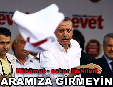 Başbakan Recep Tayyip Erdoğan, Denizli’de halka hitap ederken, 27 Nisan e-muhtırasına atıfta bulundu. Hükümet-asker ilişkileriyle ilgili de konuşan Erdoğan, “Kimse bizi tuzağa çekmesin. Kimse bizi Ordu ile, Silahlı Kuvvetler ile Hükümetimiz arasında, kendilerine göre, bir gerginlik yaratmanın gayreti içerisine girmesin” dedi.