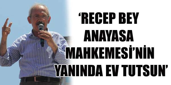 CHP Genel Başkanı Kemal Kılıçdaroğlu, Yalova ve ilçelerindeydi. CHP Genel Başkanı Kemal Kılıçdaroğlu, hükümetin Anayasa değişikli ile yargıyı ele geçtirmek istediğini söyledi. Kılıçdaroğlu, Başbakan Recep Tayyip Erdoğan’ın Yüce Divan’da kendi hakimleri tarafından yargılanmak istediğini belirtip, “Recep Bey Anayasa Mahkemesi’nin yanında ev tutusun. Taksi parası ödemesin. Bu zahmetten de kurtulsun” dedi.