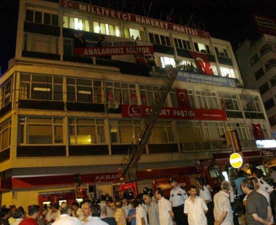 Aydın’da MHP il binasının duvarına asılan ve üzerinde ‘Sen açıldıkça analarımız ağlıyor’ yazılı pankartı gece yarısı kaldırmak isteyen polis ile partililer arasında arbede yaşandı. Hakkari’nin Şemdinli İlçesi Günyazı Köyü’nün Irak sınırındaki Tanyolu Mezrası’nda bulunan sınır bölüğü üs bölgesine teröristlerce geçtiğimiz 19 Haziran’da düzenlenen saldırıda şehit olan Piyade Er Mehmet Ali Tosun’un cenaze töreninde MHP Aydın İl Başkanlığı’nca parti binasının İstasyon Meydanı’na bakan dış duvarına pankart asılmıştı.