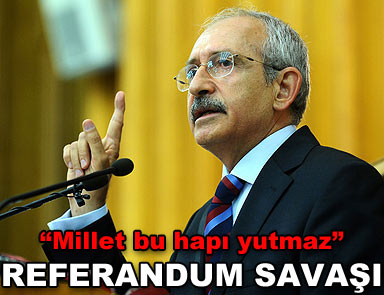 CHP Genel Başkanı Kemal Kılıçdaroğlu partisinin TBMM grup toplantısında konuştu. Başbakan Recep Tayyip Erdoğan ve hükümete yüklenen Kılıçdaroğlu, hükümetin yargıyı ele geçirmeye çalıştığını savunurken, “Bu millet bu hapı yutmaz, hapı yutmamalı. Vatandaşlarımız bilinçli sandığa gitmeli ve oyunu kullanmalı” dedi. Dokunulmazlıklarla ilgili de Başbakan’a yüklenen Kılıçdaroğlu, “Halka hesap vermekten korkan bir Başbakan’a bu ülkenin ihtiyacı yok” diye konuştu.