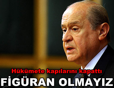 Başbakan Recep Tayyip Erdoğan ile görüşmeye kapıları kapatan MHP lideri Devlet Bahçeli, bu kararının gerekçesini açıkladı. Bir kez daha hükümetin açılım projesini eleştiren Bahçeli, “Bu hatanın bedelini ödemek için nelerden vazgeçeceğiz?” diye sordu. Bahçeli, “Şimdiye kadar hatrımızı bile sormayanların figüranı olmayız” dedi.