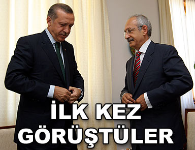 Başbakan Recep Tayyip Erdoğan ve Ana Muhalefet Partisi CHP’nin lideri Kemal Kılıçdaroğlu bugün bir araya geldi. Kılıçdaroğlu’nun Meclis’teki makam odasında yapılan görüşmede terör konuşuldu. Kılıçdaroğlu görüşme sonrası, “Terörün sonlanması için katkı vermek gerekiyorsa seve seve veririz” dedi. Başbakan Erdoğan da yarın saat 11.00’de görüşmelerle ilgili bir açıklama yapacak.