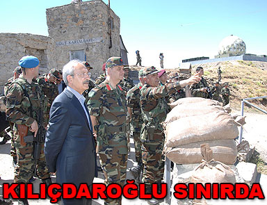 CHP Genel Başkanı Kemal Kılıçdaroğlu’nun, sınır bölgesini ziyareti sırasında, Hakkari-Çukurca’ya geçtiği ve sınırdaki siperlerde incelemelerde bulunduğu bildirildi. Kılıçdaroğlu’nun sınır gezisine Genelkurmay Başkanı Orgeneral İlker Başbuğ da katıldı.