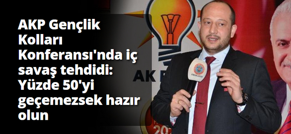 AKP’nin Soma İlçe Gençlik Kolları tarafından Soma’da Belediye Düğün Salonunda düzenlenen konferansta konuşan AKP İl Başkan Yardımcısı Ozan Erdem, ‘“Bu referandum oylamasında yüzde elliyi geçemezsek iç savaşa hazır olun’ dedi. AKP yöneticinin istifasını istediğini duyurdu. AKP’nin Soma İlçe Gençlik Kolları tarafından Soma’da Belediye Düğün Salonunda düzenlenen “Büyük ve Güçlü Türkiye Cumhurbaşkanlığı Sistemi” başlıklı konferansta AKP İl Başkan Yardımcısı Ozan Erdem, anayasa değişikliği referandumda hayır çıkması ihtimalini işaret ederek, “Bu referandum oylamasında başarısız olursak iç savaşa hazırlanın” dedi.
