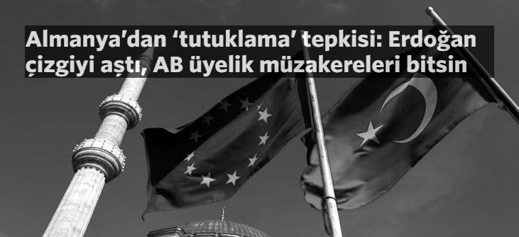 HDP’li vekiller ve Cumhuriyet gazetesinden dokuz yazar ve yöneticinin tutuklanmasının ardından Alman siyasetçiler, Türkiye’nin Avrupa Birliği’yle (AB) yürüttüğü üyelik müzakerelerinin bitirilmesini talep etti. Deutsche Welle Türkçe’nin haberine göre Alman Meclisi Sosyal Demokrat Parti (SPD) Grup Başkanı Thomas Oppermann, Türkiye’de artan otoriter eğilimler nedeniyle Ankara ile yürütülen AB üyelik müzakelerinin askıya alınmasının düşünülebileceğini söyledi: “Muhalefeti hapishaneye gönderen bir ülke AB ile müzakerelere devam edebileceğini beklememeli.”