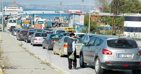 Dokuz günlük bayram tatilinin bitimiyle yollara düşen vatandaşlar her yıl olduğu gibi trafik çilesi çekti. Fırtına yüzünden feribot seferleri aksayınca, Çanakkale’de araç kuyruğu 1.5 kilometreyi buldu.. Bayram tatilinin sona ermesiyle birlikte dönüşe geçen tatilcileri, trafik karmaşası ve fırtına vurdu. . Fırtına nedeniyle İstanbul ile Yalova, Bursa ve Bandırma arasındaki bazı feribot ve deniz otobüsü seferleri ile Gelibolu-Lapseki arasındaki araba vapuru seferleri aksayınca, araçlar 1.5 kilometrelik kuyruklar oluşturdu. Feribot beklemek yerine İzmit Körfezi’ni dolaşmak isteyen sürücüler, bu sefer de Karamürsel Değirmendere arasındaki yol yapım çalışmalarna takıldı.