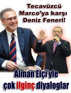 Almanya’daki Deniz Feneri operasyonunu yürüten ekibin başı olan Başkomiser Alexander Böhm, Başbakan Erdoğan’ın Marco olayı için görüştüğü Almanya Büyükelçisi Eckart Cuntz’a ‘Deniz Feneri ile Kanal 7 arasında bir bağlantı var mı?’ diye sorduğunu ve sanıkların uzun süre tutuklu kalmasından şikâyetçi olduğunu söyledi. Almanya’daki Deniz Feneri e.V operasyonunu yürüten ekibin başındaki Komiser Alexander Böhm, davanın dünkü duruşmasında Başbakan Recep Tayyip Erdoğan’ın “tanımam” dediği dolandırıcılık zanlısı Mehmet Gürhan’ın akıbetini Almanya’nın Ankara Büyükelçisi Eckart Cuntz’a sorduğunu söyledi. Böhm ayrıca, bir başbakanlık danışmanının, Büyükelçi Cuntz’a, “Biz konuyla ilgili Alman Başbakanı Merkel’in müsteşarlığını haberdar ettik” dediğini de belirtti.
