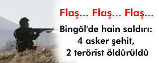 BİNGÖL’ün Yedisu İlçesi’ndeki Jandarma karakolunun nöbet noktalarına saldıran PKK’lı teröristlerin ateşle 4 asker şehit oldu, 4 asker yaralandı. Askerlerin karşılık vermesi sonucu çıkan çatışmada, PKK’lı 2 terörist ölü ele geçirildi. Yedisu İlçesi’ndeki Jandarma Karakolu çevresindeki nöbet noktalarına saat 01.00 sıralarında bir terörist uzun namlulu silahlarla açık açtı. Açılan ilk ateşle 4 asker şehit olurken, 4 asker yaralandı. Karakoldaki arsekrelirn karşılık vermesi üzerine çıkan çatışmada 2 terörist öldürüldü. Çatışmada yaralanan 4 asker helikopterle Elazığ Asker Hastanesi’ne kaldırıldı. Karakol’a saldırmaya kalkan ve askerin karşılık vermesi sonucu gece karanlığında kaçan PKK’lı teröristlerin etkisiz hale getirilmesi için bölgede hava destekli operasyon başlatıldı.