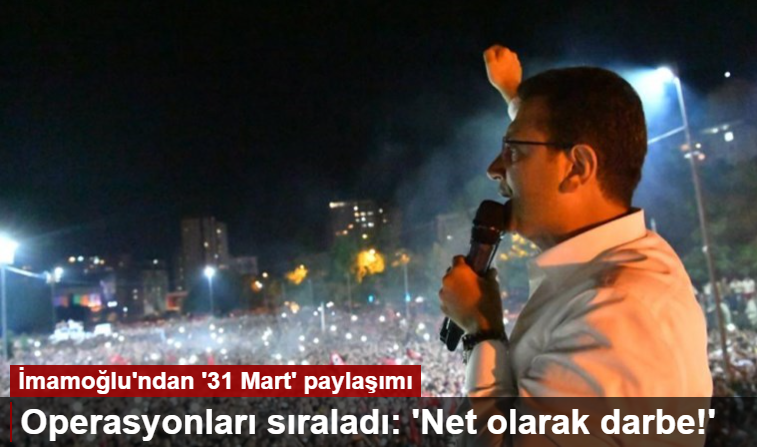 Tutuklanan İstanbul Büyükşehir Belediye (İBB) Başkanı Ekrem İmamoğlu, sosyal medya hesabından yaptığı paylaşımda, “1 yıl önce bugün, 1 milyon oy farkıyla 16 milyon İstanbullu bir kez daha kazanmıştı” ifadelerini kullanarak 1 yıl boyunca yapılan operasyonları sıraladı ve ‘Net olarak darbedir’ dedi.