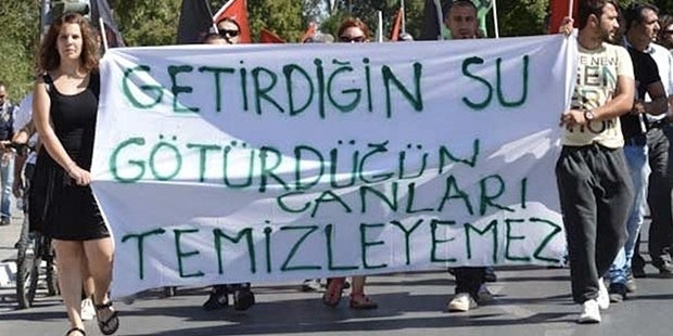 Cumhurbaşkanı Recep Tayyip Erdoğan ve beraberindeki heyetin Mersin’den Kıbrıs’a içme suyu taşıyan projenin açılışını yapmak için Kıbrıs’a yapacağı ziyaret öncesinde yapılan eylemde, “Getirdiğin su, götürdüğün canları temizleyemez” pankartı açıldı. Evrensel’in haberine göre, yaratacağı ekolojik tahribat ve politik sorunlar nedeniyle Kıbrıslı Türklerin tepkisine neden olan Su Projesi’nin açılışını yapmak üzere Geçitköy’e gidecek olan Tayyip Erdoğan ve beraberindeki heyetin ziyareti öncesi Lefkoşa’daki Türkiye büyükelçiliği önünde protesto eylemi yapıldı.