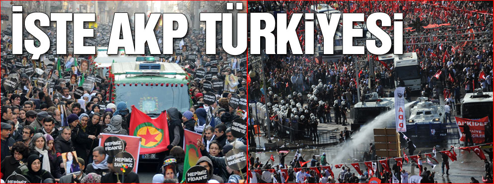 3 PKK’lının cenazesi Diyarbakır’da gövde gösterisine dönüştü. Polis ortalıkta gözükmedi. Polisin görevini BDP’liler yaptı. Bu görüntüler 29 Ekim’de AKP’nin emriyle polisin Türk bayraklarıyla Ata’sına koşanlara yaptığı saldırıyı hatırlattı. Paris’te suikast sonucu öldürülen üç PKK’lının cenazeleri Salı günü İstanbul’a getirildi. Biri Tunceli, biri Kahramanmaraş diğeri Mersin’de defnedilecek olan cenazeler için Diyarbakır’da miting gibi bir cenaze töreni düzenlendi.