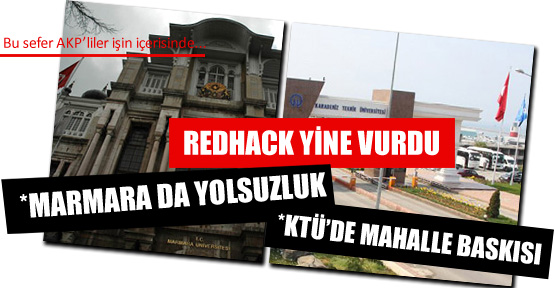 RedHack’ten Marmara Üniversitesi hakkında yeni belge ve KTÜ’deki ‘mahalle baskısı’ sendromu belgesi. RedHack, daha önce hakkında belge yayımladığı Marmara Üniversitesi hakkında yeni belgeler sundu. ODTÜ’de yaşanan olayların ardından YÖK’ün sitesini ‘hack’leyerek gizli belgelere ulaşan hacker grubu RedHack, daha önce Marmara Üniversitesi hakkında farklı yolsuzluk belgeleri yayımlamıştı.
