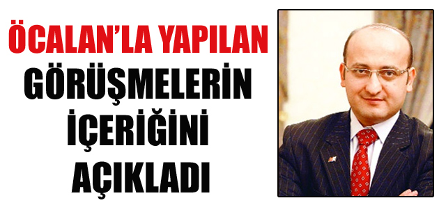 Başbakan Erdoğan’ın danışmanı İmralı’yla yapılan görüşmelerin içeriğini açıkladı. Başbakan’ın, İmralı’yla yapıldığını söylediği görüşmelerin içeriğini danışmanı Yalçın Akdoğan açıkladı: Silah bıraktırmayı müzakere ediyoruz. Başbakan Recep Tayyip Erdoğan’ın siyasi başdanışmanı olan AKP Ankara Milletvekili Yalçın Akdoğan, İmralı’yla, PKK’ya silah bıraktırmak amacıyla yapılan görüşmelerin sürdüğünü söyledi.