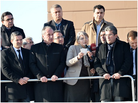 Ergenekon davasında CHP milletvekilleri dışarıda bekleyenlere konuşmalar yaptı. CHP’li İnce konuşmasında, “Davanın savcısı AKP, tanığı PKK, yargılanan Türkiye’dir” dedi. Silivri’deki Ergenekon davasında verilen arada CHP milletvekilleri dışarıda bekleyenlere konuşmalar yaptı. CHP Grup Başkanvekili Muharrem İnce konuşmasında, “Bu topraklar ilk kez böyle bir mahkemeye tanıklık ediyor. Savcısı AKP , tanığı PKK , yargılanan Türkiye’dir” dedi.