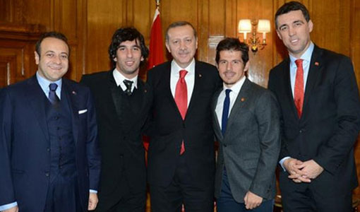 Resmi ziyaret için bir günlüğüne İspanya’ya giden Başbakan Recep Tayyip Erdoğan, Atletico Madrid’de top koşturan milli futbolcular Arda Turan ve Emre Belözoğlu’nu kabul etti. Madrid’de gerçekleşen görüşmeye, AK Parti Milletvekili ve eski futbolcu Hakan Şükür de katıldı. Başbakan’a Atletico Madrid formasının hediye edilirken, mikro blog sitesi twitter’dan paylaşılan bir kare ise dikkati çekti.