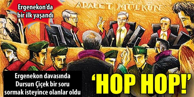 Ergenekon Mahkemesi Başkanı Özese, Dursun Çiçek’in gizli tanığa sorduğu soruyu, sanığın kimliğini ortaya çıkarabileceği gerekçesiyle reddedince izleyicilerden biri tepki gösterdi. ”Hop, hop” sözleri üzerine Özese, sanığı dışarı attırdı. ERGENEKON Davası’nın 226’ıncı duruşmasında gizli tanık Tepe, “Bilinmesini isterim buraya vatandaşlık görevi olduğu için geldim. Tanıklık yapmam için kimsenin baskı ve yönlendirmesi de yoktur. Sanıklardan pek çoğuyla tanışıp görüşme imkanım vardı ama iyi ki akıllık edip görüşmemişim, yoksa ben de orada sanıkların arasında olabilirdim” dedi.