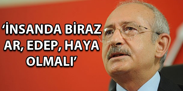 CHP lideri Kemal Kılıçdaroğlu, meclisi olağanüstü toplantıya çağrılarmalarının ardından ağır suçlamalarda bulunan Başbakan Recep Tayyip Erdoğan’a aynı sertlikte yanıt verdi. Kılıçdaroğlu, “Hükümetin yasama organına gelip bilgi vermesini istemek ne zamandan beri PKK terör örgütünün arkasına saklanmak oldu. İnsanda biraz ar, edep, haya olmalı” dedi.