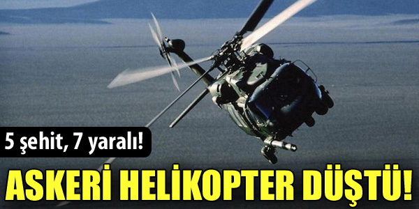 Hakkari’nin Yüksekova İlçesi’ne bağlı Dağlıca bölgesinde bugün akşam saatlerinde kalkış sırasında teknik bir arıza nedeniyle düştüğü belirtilen Mi- 17 tipi askeri kargo helikopterinde 5 asker şehit oldu,7 asker yaralandı. Helikopterin kalkış sırasında teknik arıza nedeniyle düştüğü belirtildi. Olay saat 16.00 sıralarında Dağlıca Taburu helikopter pistinde meydana geldi. Güvenlik nedeniyle karadan sevkiyatın riskli olması nedeniyle, kullanılan askeri kargo helikopteri kalkışı sırasında yan yattı. Meydana gelen helikopter kazasında 5 asker şehit oldu. Kalkış sırasında teknik arıza nedeniyle düşen askeri kargo helikopterinde bulunan 7 askerin de yaralandığı belirtildi.