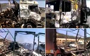 Suriye’de Türk TIR’larına saldırı haberlerine bir yenisi daha eklendi. Babel-Hava Sınır Kapısı yakınlarında çatışmanın ortasında kalan 12 Türk TIR’ı muhalif güçlerce yakıldı. HATAY – Suriye’nin Babel-Hava Sınır Kapısı yakınlarında Suriyeli muhalif güçlerin 12 Türk TIR’ını yaktığı bildirildi.