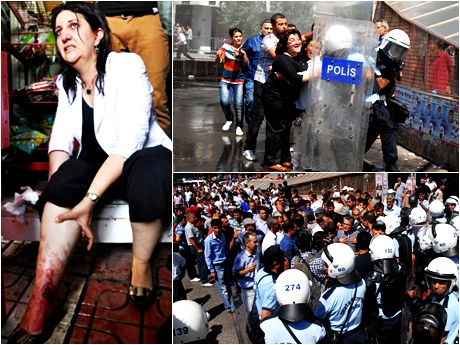 Diyarbakır’da bugün yapılması planlanan ancak valiliğin izin vermediği miting nedeniyle ortalık karıştı. Polis, İstasyon Meydanı’na girmek isteyenlere gaz bombasıyla müdahale etti. Çıkan olaylarda BDP Iğdır Milletvekili Pervin Buldan yaralandı. İstanbul Milletvekili Sırrı Süreyya Önder, Buldan’a hedef gözetilerek ateş açıldığını iddia etti. BDP Van Milletvekili Özdal Üçer çıkan gerginlikte, “O emniyet amirini bana getirin. Genel başkanıma saygısızlık yapanın kafasına sıkarım” dedi.