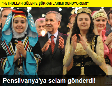 Bursa’da düzenlenen 10’uncu Türkçe Olimpiyatları’na katılan Başbakan Yardımcısı Bülent Arınç, yaptığı konuşmada Fetullah Gülen’e selam yolladı, “O muhteşem insana, hüzünlü gurbetten, şimdi Bursa’yı seyreden bu güzel insana, muhterem Fetullah Gülen Hoca Efendi’ye şükranlarımı sunuyorum. Rabbim hayırlı ve uzun ömürler versin” dedi. Bursa’da bu yıl 25 ülkeden, 65 çocuğun katıldığı 10’uncu Türkçe Olimpiyatları’na katılmak üzere özel bir jetle kente gelen Başbakan Yardımcısı Bülent Arınç, ilk olarak Ulucami’de akşam namazını kıldı.