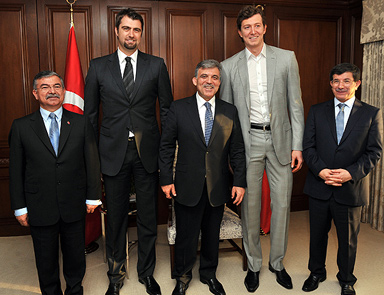 NATO zirvesine katılmak üzere Chicago’ya gelen Cumhurbaşkanı Abdullah Gül, NBA’de oynayan basketbolculardan Mehmet Okur ve Ömer Aşık’la bir araya geldi. NATO zirvesi için Chicago’da bulunan Cumhurbaşkanı Abdullah Gül, Amerikan Ulusal Basketbol Ligi’nde (NBA) oynayan Türk basketbolculardan Ömer Aşık ve Mehmet Okur’u kabul etti.