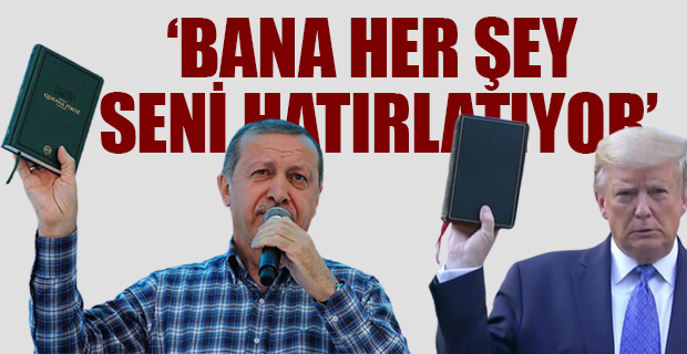 ABD Başkanı Trump’ın elinde İncil’i tuttuğu fotoğraf akılara Cumhurbaşkanı Tayyip Erdoğan’ın 2015 yılındaki mitingini getirdi. CHP Genel Başkan Yardımcısı Tuncay Özkan’ın, “Bana her şey seni hatırlatıyor” diyerek sosyal medyadan yayınladığı video kısa sürede büyük beğeni topladı ABD Başkanı Trump‘ın elinde İncil’i tuttuğu fotoğraf akılara Cumhurbaşkanı ve AKP Genel Başkanı Tayyip Erdoğan‘ın 2015 yılındaki mitingini getirdi.