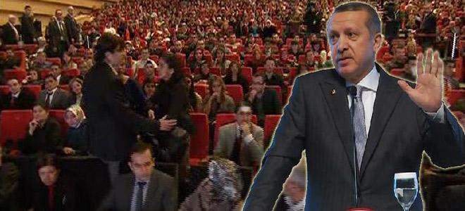 Başbakan Erdoğan’ın konuşması sırasında ayağa kalkıp konuşmaya başlayan iki genç kızın önce salonda kalmasını sağladı, ardından nasihat etti. Ancak konuşmayı sürdüren genç kızlar daha sonra salondan çıkarıldı. ANKARA-Başbakan Recep Tayyip Erdoğan, ATO Kongre ve Sergi Sarayı Congresium’da düzenlenen İş ve Meslek Danışmanlarını atama törenine katıldı. Başbakan Erdoğan’ın konuşması sırasında ayağa kalkıp konuşmaya başlayan iki genç kız polis tarafından dışarı çıkarılmak istendi.