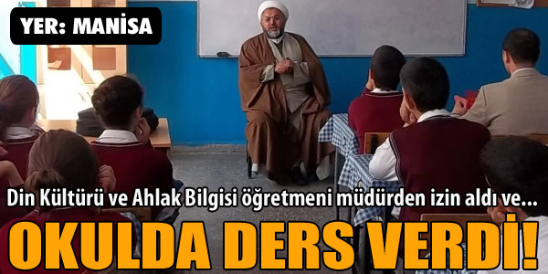 Din bilgisi öğretmeni okul müdüründen izin alarak Caferi İmam Bayram Dalga’yı derse davet etti… MANİSA’nın Turgutlu İlçesi’nde eğitim veren Gazi İlköğretim Okulu Din Kültürü ve Ahlak Bilgisi dersi öğretmenlerinden Durmuş Ali Etbaş, okul müdüründen izin alarak Caferi İmam Bayram Dalga’yı derse davet etti. İmam Bayram Dalga, 7’nci sınıflara Caferi ve Alevi inancını anlattı.