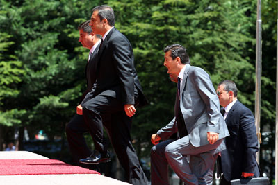 Başbakan Recep Tayyip Erdoğan, MİT Müsteşarı Hakan Fidan ile yaklaşık 1,5 saat görüştü. 8 yıl sonra Çanakkale’deki anmaya katılmayan Başbakan Erdoğan, dün Ankara Subayevleri’ndeki evinde MİT Müsteşarı Hakan Fidan’ı ağırladı. Kulislerin hareketlendiği iki saatlik görüşmede Başbakan Yardımcısı Bekir Bozdağ, Adalet Bakanı Sadullah Ergin, AK Parti Grup Başkanvekili Mahir Ünal, Genel Başkan Yardımcısı Ömer Çelik, Genel Sekreter Haluk İpek de bulundu.