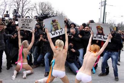 Ukraynalı Feminist grup ‘FEMEN’ üyesi 4 kadın, Ayasofya meydanında eylem yaptı. Şiddeti protesto eden kadınları polis gözaltına aldı. 8 Mart Dünya Emekçi Kadınlar Günü’nde, kadınlara yönelik şiddeti protesto eden gösterici kadınlar, geldikleri araçtan çıplak halde inerek sloganlar atmaya başladı.