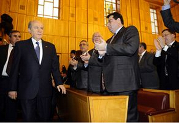 Partisinin grup toplantısında konuşan MHP Genel Başkanı Devlet Bahçeli, “AKP’nin savaş çığırtkanlığı yapması ve komşu bir ülkeye müdahale niyetlerine destek olması kabul edilir gibi değildir” dedi. Bahçeli, AKP’yi, cumhuriyete dair ne varsa karşısına almakla da suçladı. Bahçeli, partisinin grup toplantısında yaptığı konuşmada, kamuoyunda “Arap Baharı” olarak bilinen olaylara değindi. Olayları “isyan ve halk hareketi olarak niteleyen Bahçeli, bu olayların yakın coğrafyaları alt üst ettiğini ve olumlu beklenti içinde olanları hayal kırıklığına uğrattığını savundu.