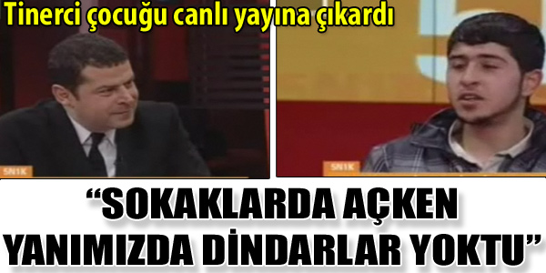 Cüneyt Özdemir, Başbakan Erdoğan’ın tartışma yaratan sözleri üzerine tinerci bir çocuğu canlı yayın konuğu olarak aldı, “Gençler Tinerci mi olsun?” sözlerini o çocuğa sordu… Başbakan Erdoğan’ın “Bu gençliğin tinerci olmasını mı istiyorsunuz? Siz bu gençliğin manevi değerlerinden kopuk, hiçbir istikameti olmayan bir nesil mi olmasını istiyorsunuz? Biz sizinle anlaşamayacağız. Hem çağdaş hem dindar olunamıyor mu? Önce başınızı önünüze eğin ve hem dindar hem çağdaş bir nesil nasıl yetişir bir düşünün. Dindar bir nesil farklı düşüncelere saygılıdır. O terbiyeyi alarak yetişmiş bir nesiliz” sözleri büyük bir tartışma başlattı.