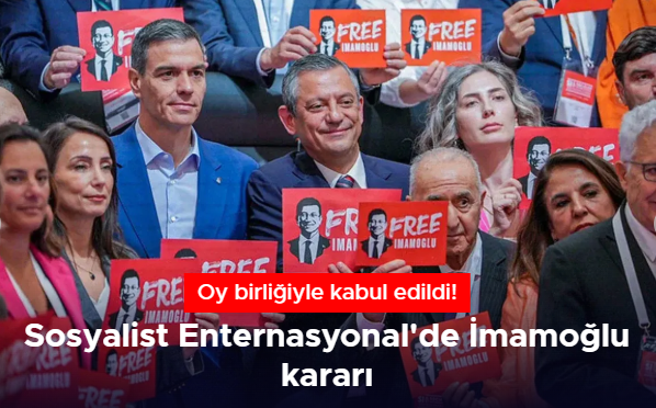 İstanbul’da CHP’nin ev sahipliğinde gerçekleştirilen Sosyalist Enternasyonal Konsey toplantısının son gününde “Ekrem İmamoğlu’nun Haksız ve Hukuksuz Biçimde Tutuklanmasına İlişkin Karar” oy birliğiyle kabul edildi. Kararda “Sosyalist Enternasyonal Konseyi, Ekrem İmamoğlu’nun derhal serbest bırakılması ve görevine iade edilmesine dönük en güçlü şekilde çağrı yapmaktadır” denildi.