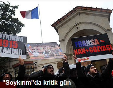 Fransa 1915 olaylarıyla ilgili inkar tasarısında ikinci perdeye hazırlanıyor. Olayların soykırım olarak tanımlanmasını reddedenlerin cezalandırılmasını öngören yasa tasarısı bugün Fransız senatosuna gelecek. Fransa’daki Türk dernekleri de, senato önünde protesto gösterisi düzenlemeye hazırlanıyor. Senato Genel Kurulu, yasanın içeriğine dair görüşmeye başlamadan önce, Kanunlar Komisyonu’nun “teklif gündeme alınmasın” dediği değişiklik önergesini görüşecek.