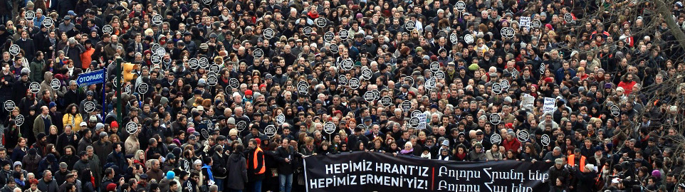 Gazeteci Hrant Dink, öldürülüşünün 5. yılında anıldı. Mahkeme kararını protesto eden on binlerce kişi, Taksim Meydanı’ndan Agos gazetesine doğru yürüdü. Burada basın açıklamasını okuyan Karakaşlı, Türkiye’de öldürülen Ermenilerin isimlerini okurken, toplanan kitle de ‘Burada’ diye karşılık verdi. İSTANBUL – 5 yıl önce Agos gazetesi önündeki silahlı saldırıda öldürülen gazeteci Hrant Dink’i İstanbul’da on binlerce kişi andı.