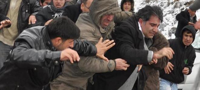 Bombardımanda ölen 35 kişi için taziye ziyaretinde bulunmak üzere Gülyazı köyüne giden Uludere Kaymakamı Naif Yavuz ziyaret sırasında bir grubun taşlı ve yumruklu saldırısına uğradı. ŞIRNAK – Irak sınırında meydana gelen olayda hayatını kaybedenler için Gülyazı köyündeki taziye çadırını ziyaret eden Uludere Kaymakamı Naif Yavuz, bir grup tarafından darp edildi.