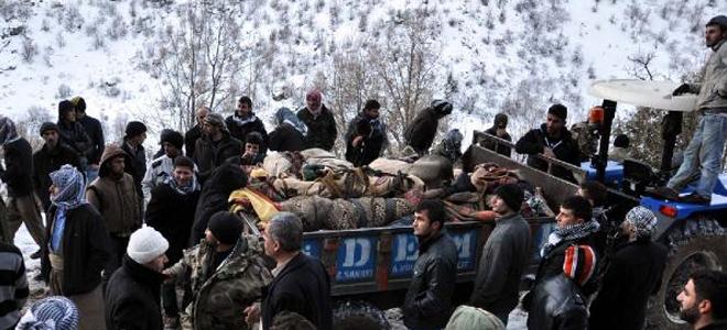 PKK’nın Kuzey Irak’ta sınır noktasına düzenlediği hava operasyonunda 35 kişi öldü. Sınır köylüleri ölenlerin akaryakıt kaçakçısı olduklarını ileri sürerken, Genelkurmay grubun arasına PKK’lı teröristlerin sızdığının belirlendiğini açıkladı. ŞIRNAK – Şırnak’ın Uludere İlçesi’nin sınır kesiminde yoğunlaşan bombardımanda ilk bilgilere göre 35 kişi yaşamını yitirdi. Sınırdaki köylüler, ölenlerin PKK’lı değil, Irak’tan katırlarla mazot getiren kaçakçılar olduğunu söyledi.