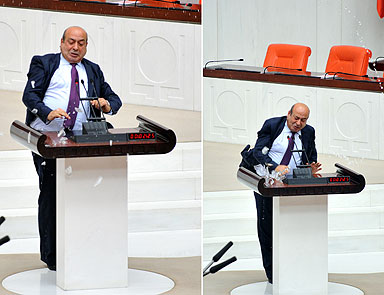 BDP Grup Başkanvekili Hasip Kaplan, AK Parti Grup Başkanvekili Nurettin Canikli’nin sözlerine sinirlenerek, konuşma yaptığı kürsüdeki bardağı kırarak fırlattı. Cumhurbaşkanı Abdullah Gül’ün bir kez daha görüşülmek üzere iade ettiği sporda şike cezalarını indiren kanunun TBMM Genel Kurulundaki görüşmeleri, Canikli ile Kaplan’ın tartışmasına sahne oldu.