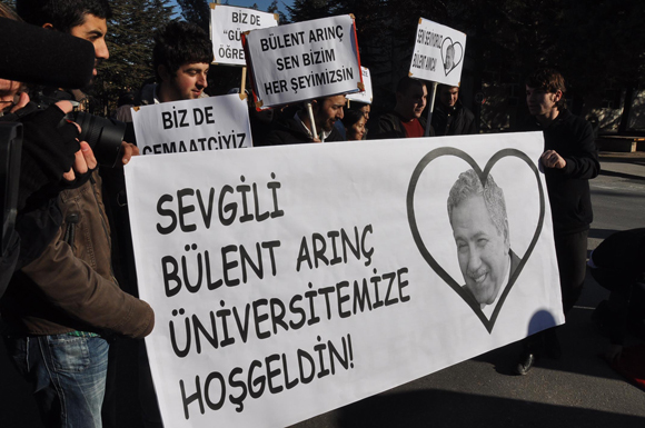 Bir açılış için dün Anadolu Üniversitesi’ne gelen Başbakan Yardımcısı Bülent Arınç öğrenciler tarafından önce “yalandan” sevgi gösterisiyle karşılanıp sonra da protesto edildi. Başbakan Yardımcısı Bülent Arınç, Anadolu Üniversitesi (AÜ), TRT ve Cambridge Üniversity Press ile yapılan işbirliğiyle hazırlanan, ”Uzaktan İngilizce Dil Eğitim Programı”nın açılışı ve tanıtımı amacıyla AÜ Atatürk Kültür ve Sanat Merkezi’nde düzenlenen törene katıldı.