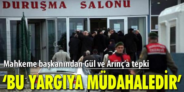 Mahkeme başkanından Gül ve Arınç’a tepki BALYOZ Davası’na, Cumhurbaşkanı Abdullah Gül ve Başbakan Yardımcısı Bülent Arınç’ın tutukluluk süreleriyle ilgili açıklamaları damga vurdu. Mahkeme başkanı Ömer Diken, Gül ve Arınç’ın açıklamalarını örnek gösteren sanıklara, “Biz yasalara bağlıyız. Değerlendirmeler Cumhurbaşkanı, Başbakan, bakan da olsa söyleyen kişiyi bağlar. Bizi bağlamaz. Biz etki altında kalmadan bağımsız yargılama yapıyoruz. Bu tür söylemler, yargıya müdahaleye girer” dedi.