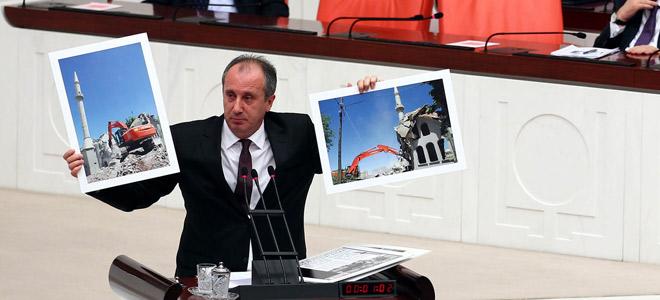 CHP’nin, Başbakan hakkında verdiği gensoru görüşmelerine CHP Grup Başkanvekili Muharrem İnce’nin, Genel Kurul Salonu’nda gösterdiği yıkılan cami fotoğrafları damgasını vurdu.
