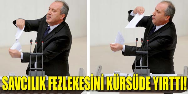CHP Grup Başkanvekili İnce, Odatv iddianamesinde adının geçmesi üzerine dün bir basın toplantısı düzenlemiş ve ”o iddianameyi kürsüde yırtıp atacağım” demişti. İnce bugün de bu eylemini gerçekleştirdi CHP Grup Başkanvekili Muharrem İnce, TBMM Genel Kurulu kürsüsünde, yasama dokunulmazlığının kaldırılmasına ilişkin tezkereyi yırttı.
