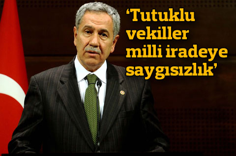 Başbakan Yardımcısı Bülent Arınç, “Milletvekili seçilmiş ve mazbatasını almış olmasına rağmen, parlamentoya gelerek ant içme fırsatı bulamayan arkadaşlarımız için üzülüyorum. Çünkü onların içeride tutuklu kalması milli iradeye saygısızlıktır” dedi. Arınç, Terörle Mücadele Yasası’nda propagandayi düzenleyen maddelerin gözden geçirilmesi gerektiğini söyledi.