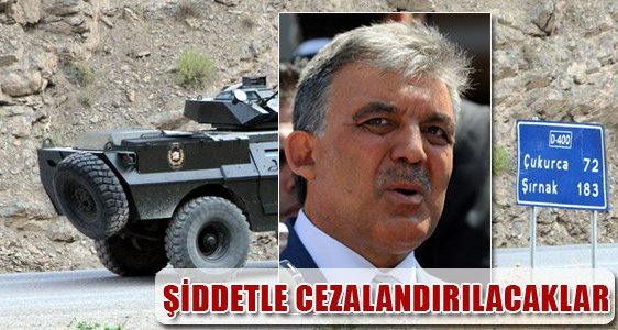 Hakkari’deki saldırıya ilk tepki Cumhurbaşkanı Gül’den gelirken, Başbakan Erdoğan yurt dışı gezisini iptal etti. ANKARA- Hakkari’deki kanlı saldırının ardından ilk açıklama Cumhurbaşkanı Gül’den geldi. İstanbul’daki 27. İSEDAK toplantısının öncesinde açıklama yapan Gül, “Bize bu acıyı çektirenler misliyle çekecektir. Bu saldırıların intikamı çok büyük olacaktır” şeklinde konuştu.
